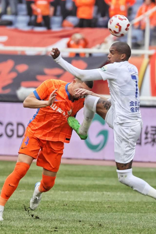 比赛第25分钟,场上风云突变,卡兰加做出危险蹬踏动作,裁判在经过VAR回看后出示直红,泰山队多一人作战。